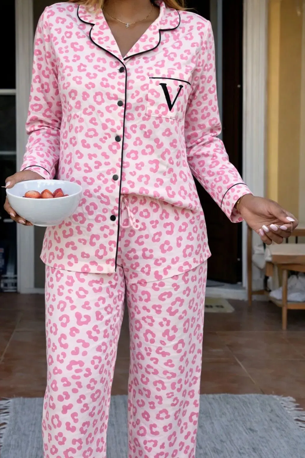 Liviano y suave, con estampa en fucsia que aporta un toque vibrante y femenino. Su formato camisero combina comodidad y estilo para acompañarte en tus momentos de descanso.